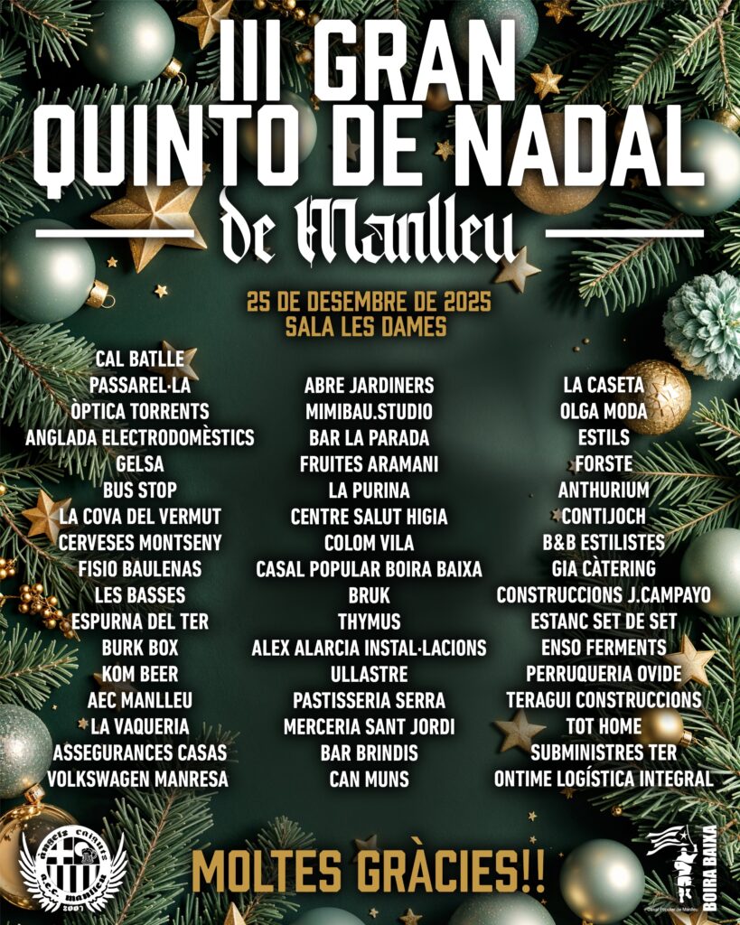 La tarda del dia de Nadal ja és sinònim del Gran Quinto de Nadal del Boira Baixa i els Àngels Caiguts! Més de 600 persones van omplir de gom a gom la Sala Les Dames per participar-hi. Agraïm la col·laboració d’entitats i establiments locals.