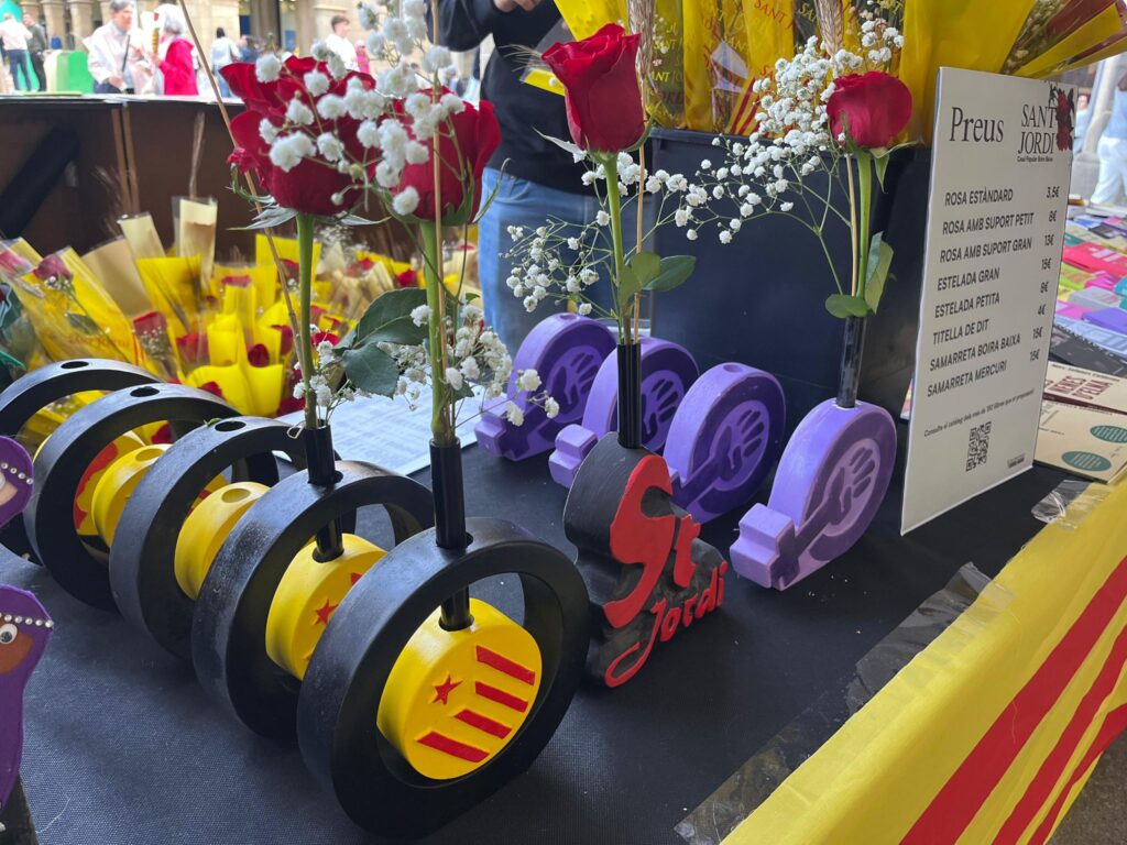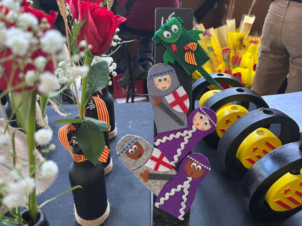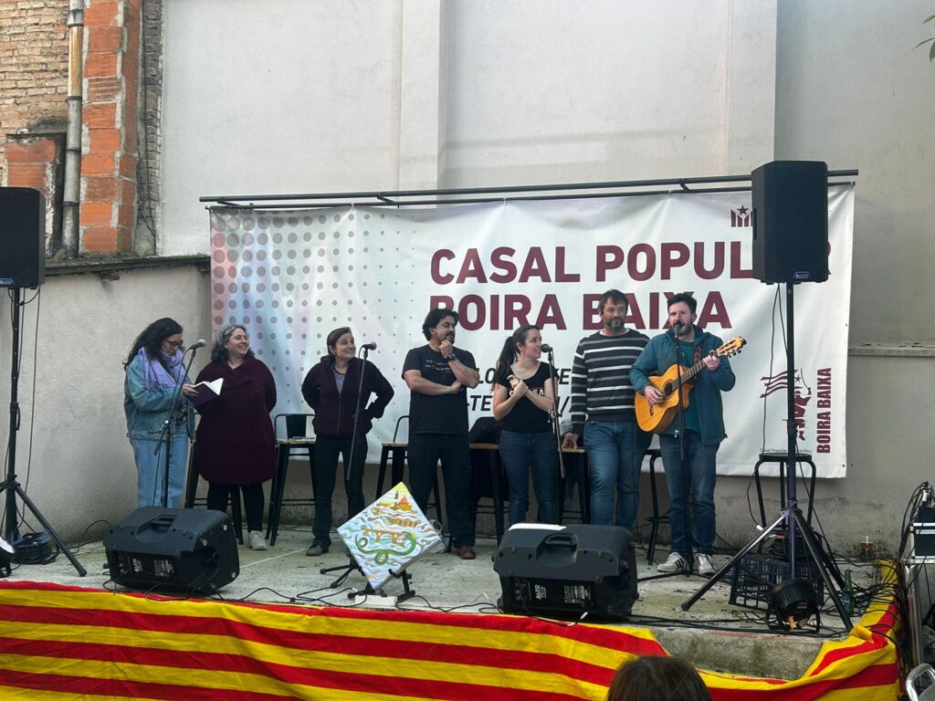 El passat 23 d’abril vam tornar a celebrar com cal la Diada de Sant Jordi amb una programació especial. Durant tot el dia, vam instal·lar la tradicional parada de roses, llibres i d’altres productes a la plaça Fra Bernadí; el bar-restaurant va ampliar el seu horari; i vam organitzar un parell d’activitats a la terrassa: un recital col·laboratiu de poemes d’autors/es d’Osona i el Lluçanès, conjuntament amb Òmnium Osona-Lluçanès, i una glosa especial de Sant Jordi, de la mà de les companyes i companys d’Oidà Manlleu, grup local de Cor de Carxofa.