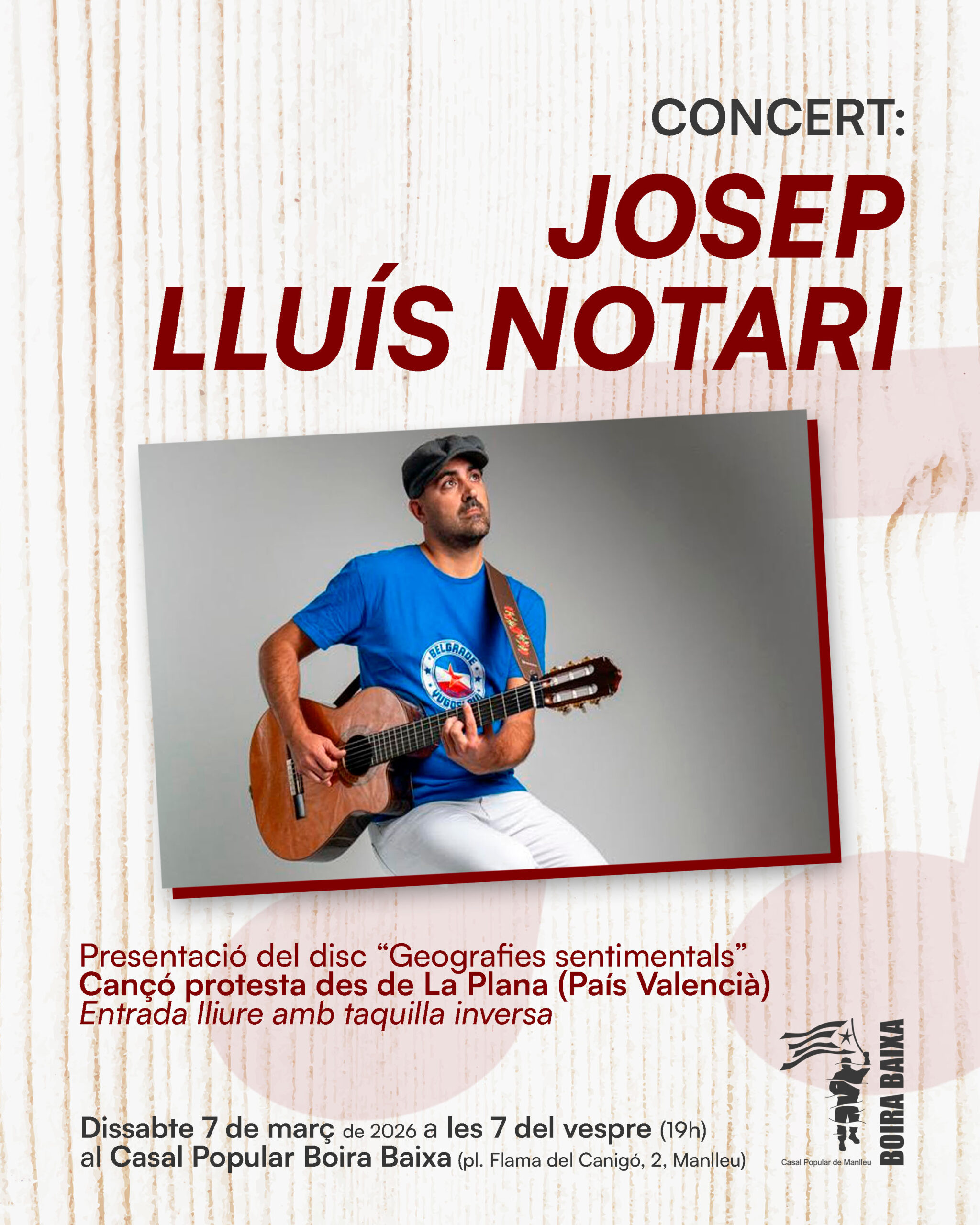 Presentant el disc “Geografies sentimentals”. Cançó protesta des de La Plana (País Valencià). Amb taquilla inversa.
