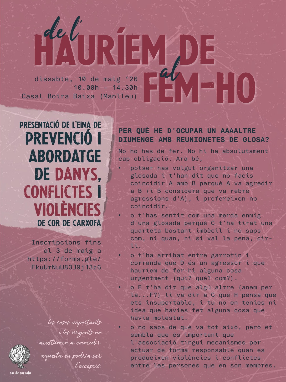 Presentació de l’eina de prevenció i abordatge de danys, conflictes i violències de Cor de Carxofa