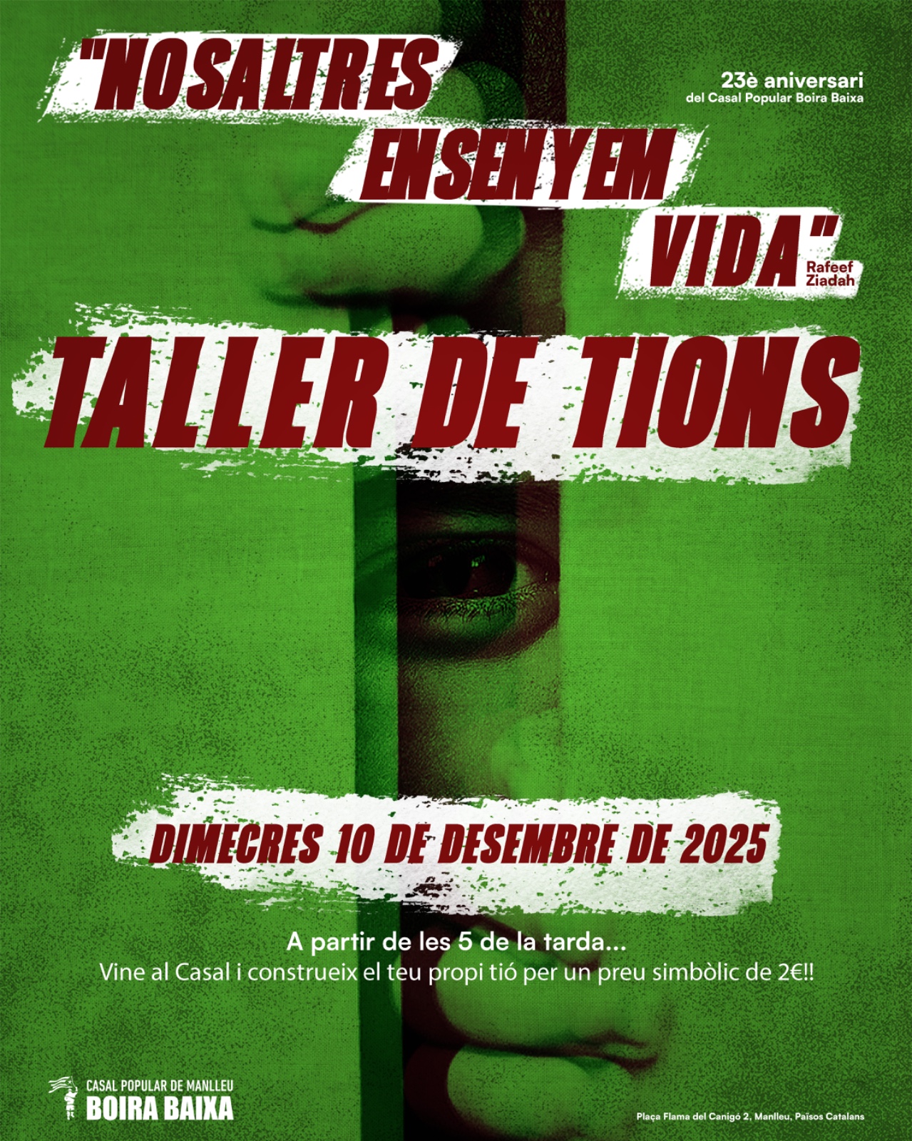 Casal Popular Boira Baixa Plaça Flama del Canigó, 2, Manlleu, Països CatalansVine i construeix el teu propi tió pel preu simbòlic de 2€! Hi haurà xocolata desfeta per tothom!