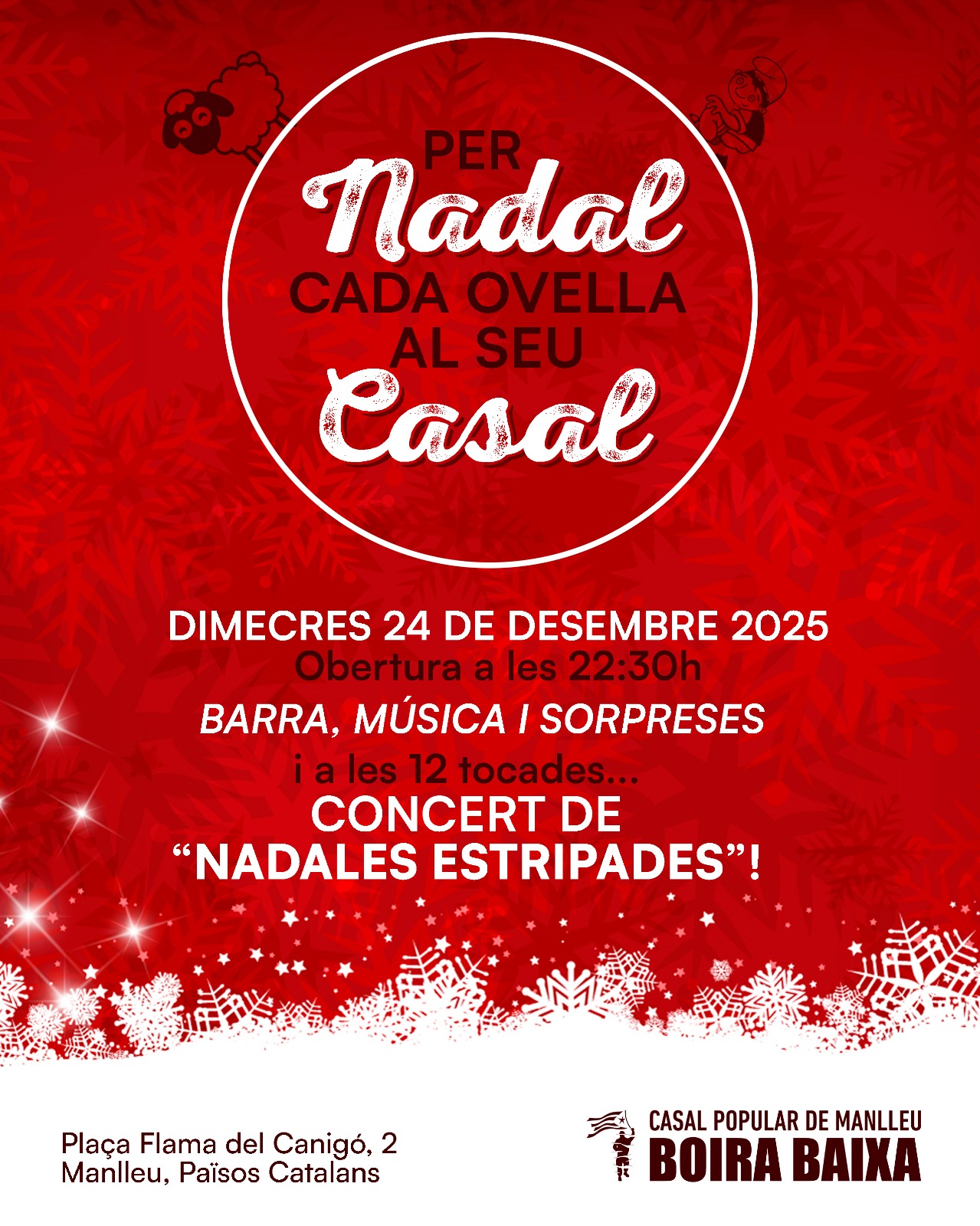“Per Nadal, cada ovella al seu Casal”: servei de barra i música + cantada de “nadales estripades”